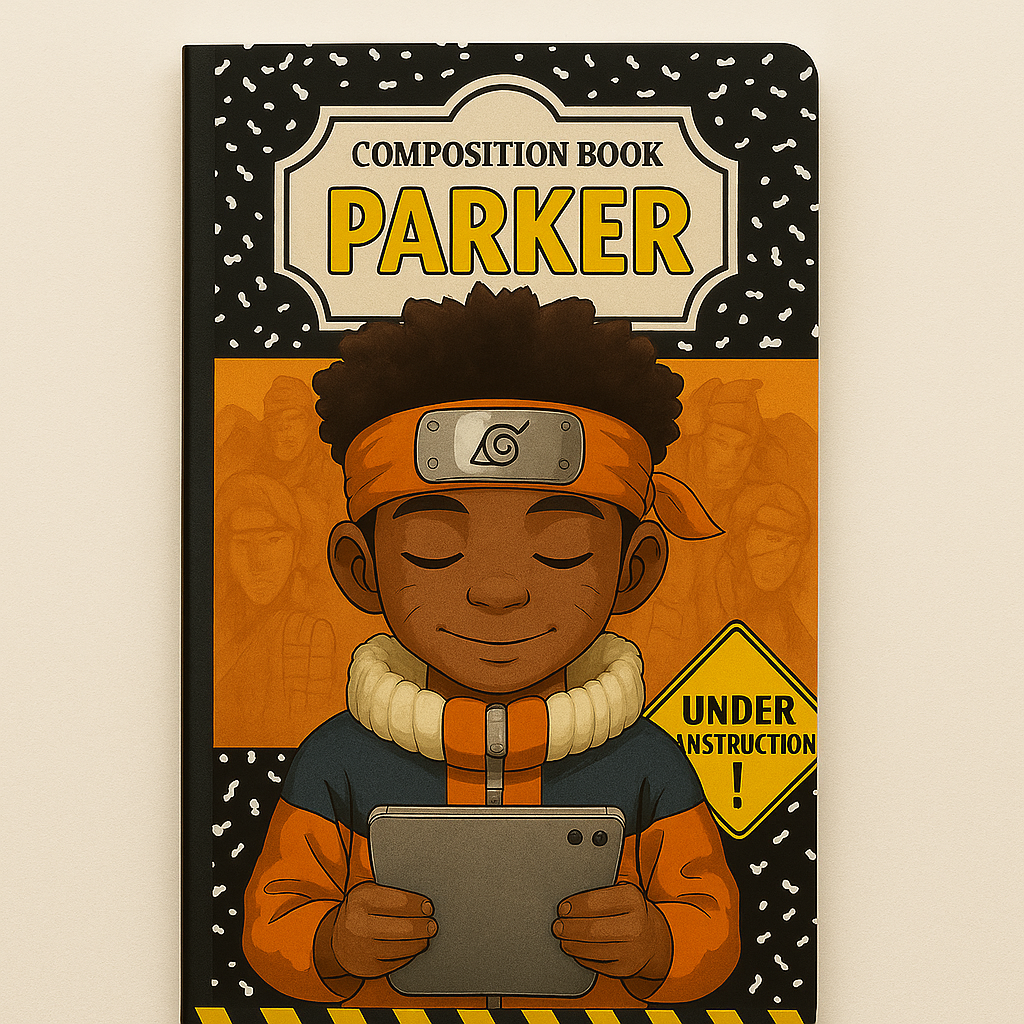 Level up your school supplies with this limited-edition Personalized Character Composition Notebook! Perfect for note-taking, journaling, sketching, or classwork, each notebook features a bold anime-inspired design that makes studying more fun and personal. Details: Standard composition notebook size (7.5” x 9.75”) ; 100 wide-ruled pages (50 sheets); Lightweight & perfect for school, home, or office use